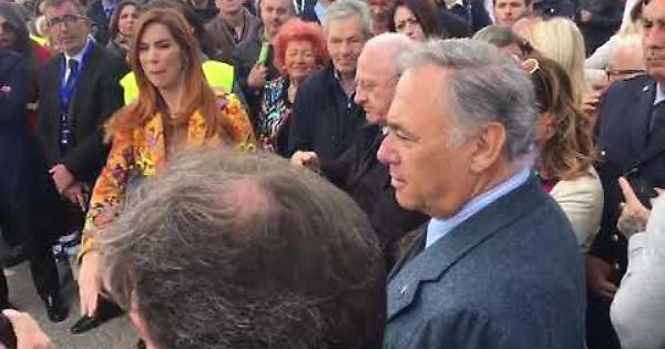 NAPOLI. Il sindaco di Napoli prende la parola sotto lo sguardo distratto del presidente della Regione De Luca, che alla fine accenna a un timido applauso.