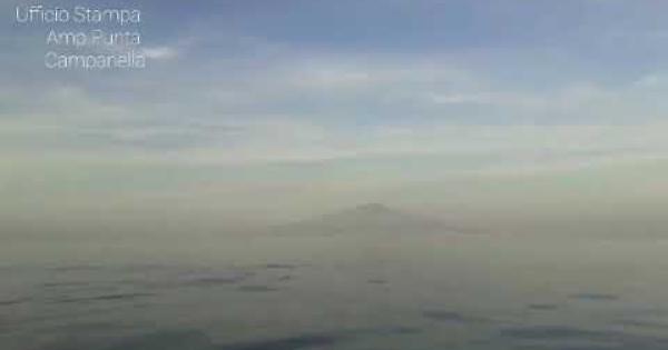 Due gruppi di delfini nuotano nel golfo di Sorrento. Sullo sfondo, l'inconfondibile profilo del Vesuvio e la costa della penisola sorrentina. I tursiopi, circa 15 in tutto, sono stati avvistati ieri dallo staff del Parco Marino di Punta Campanella, impegnato in questi giorni proprio in un progetto di tutela di questi splendidi mammiferi marini- LifeDelfi- insieme a Cnr, Legambiente, altre associazioni e aree marine protette.