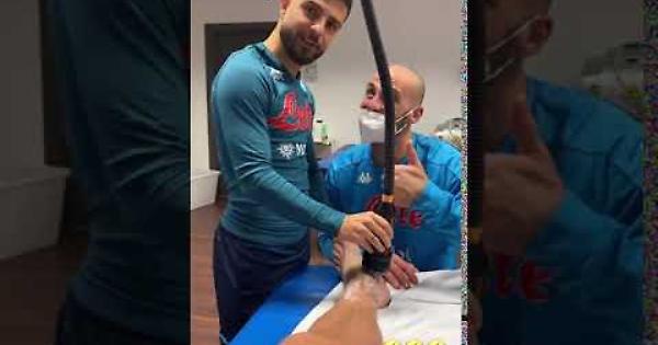 Insigne si scopre fisioterapista. La caviglia è quella di Mertens. «Così domenica giochi», ha chiosato il capitano del Napoli.