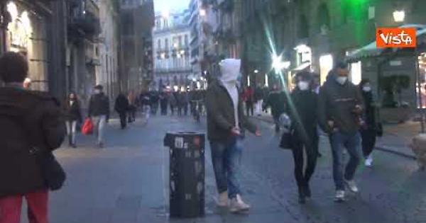 La Campania è ancora zona rossa, complice la bella giornata, però, le persone ne hanno approfittato per una passeggiate nella centrale via Toledo. (Fonte: Agenzia Vista / Alexander Jakhnagiev)
