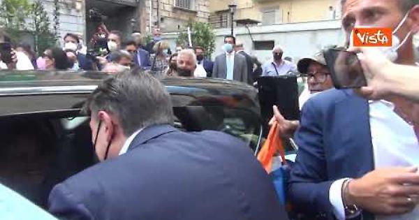 Una coppia di sposi del quartiere Sanità ha ricevuto gli auguri di Giuseppe Conte durante una passeggiata elettorale con il candidato sindaco di Napoli Gaetano Manfredi. «Gli ho augurato prosperità, perché c'è il calo demografico», ha detto il leader del Movimento 5 Stelle. (Agenzia Vista / Alexander Jakhnagiev)