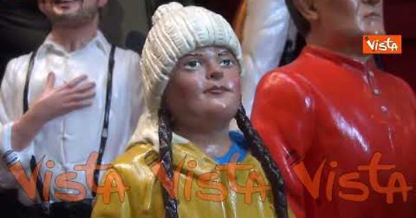 Tra i pastori tradizionali di San Gregorio Armeno e i volti famosi, la novità di quest'anno è Greta Thunberg. Ecco la statuina realizzata dal maestro Genny Di Virgilio. (Agenzia Vista / Alexander Jakhnagiev)