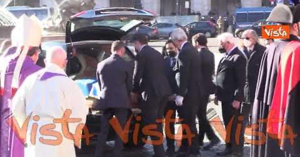 L'uscita della bara con le spoglie di David Sassoli al termine dei funerali di Stato alla Basilica di Santa Maria degli Angeli e dei Martiri a Roma. (Agenzia Vista / Alexander Jakhnagiev)