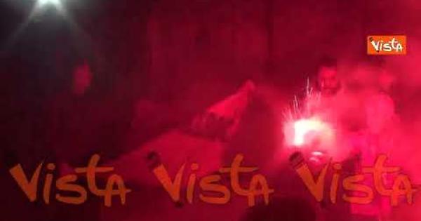 Le immagini dei festeggiamenti della comunità marocchina a Napoli, a piazza Mancini, nei pressi della stazione centrale di Napoli, dopo la vittoria del Marocco contro il Portogallo ai mondiali in Qatar. Il Marocco passa in semifinale, è la prima volta per una squadra africana. (Agenzia Vista / Alexander Jakhnagiev)