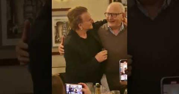 Il celebre frontman e leader degli U2 è giunto a Napoli dove sabato sarà in concerto al teatro San Carlo. Appena giunto in città l'artista è andato a cena da Mimì alla Ferrovia, storico locale napoletano, dove con i titolari e lo staf si è anche intrattenuto cantando alcne strofe di una canzone napoletana.