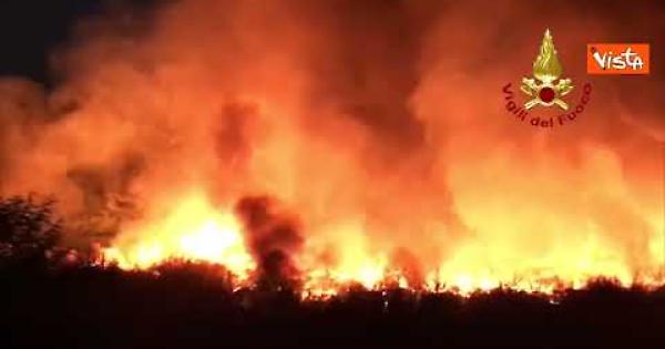Un incendio è divampato in prossimità di un ex campo rom a Barra, in via Mastellone, vicino ai caselli dell'autostrada Napoli - Salerno. Il fumo che si è sviluppatp è visibile da diversi chilometri di distanza. Va avanti da ore l'intervento dei Vigili del Fuoco. (Agenzia Vista / Alexander Jakhnagiev)