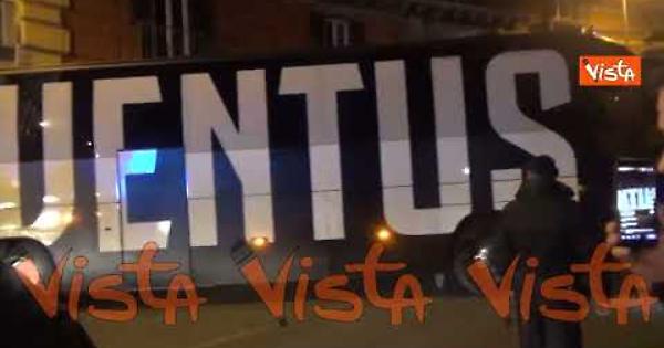 Ecco le immagini dell'arrivo del pullman della Juventus all'Hotel Parker's a Corso Vittorio Emanuele a Napoli. Ad attendere i bianconeri anche un piccolo gruppo di tifosi con qualche sciarpa. (Agenzia Vista / Alexander Jakhnagiev)