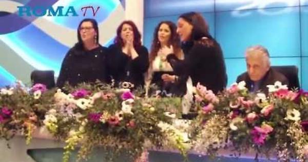 Il cast del musical "Romeo e Giulietta - Ama e cambia il mondo" improvvisa sotto gli occhi del produttore David Zard un live a cappella nella Sala Stampa del taeatro Ariston di Sanremo.