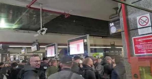 Un gruppo di circa 300 tifosi dell'Eintracht di Francoforte sono giunti stasera intorno alle 21,30 allastazione Centrale di Napoli. Ad attenderli un cordone di polizia che li ha scortati fuori